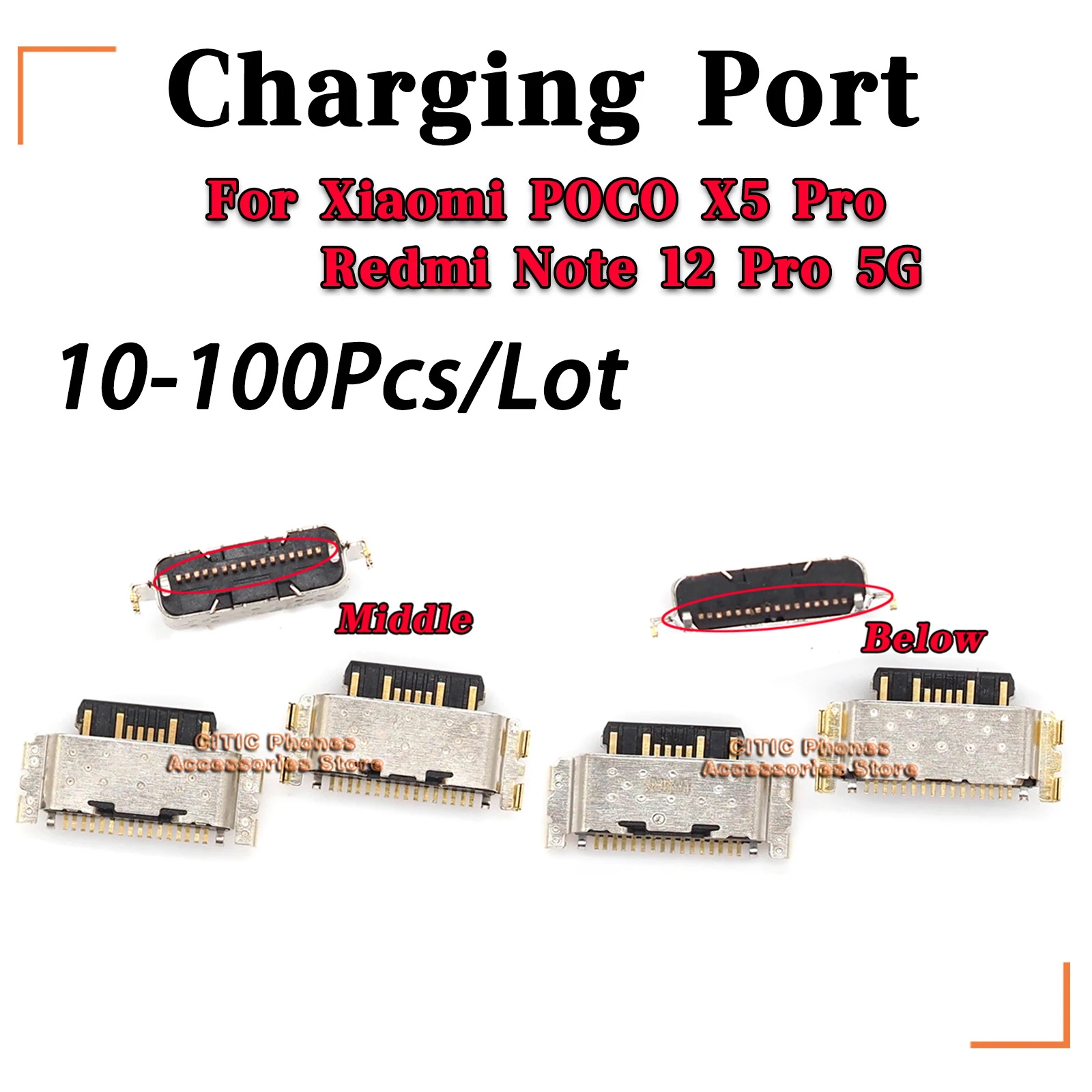 Replacement charging tail port connectors for Xiaomi POCO X5 Pro and Redmi Note 12 Pro 5G. These dock slot connectors are available in packs from 10 to 100 pieces and are designed for use in repair and refurbishment of devices requiring Type-C USB charging ports. Each connector provides the standard interface for charging and data transfer and is suitable for technicians and hobbyists handling multiple repairs.