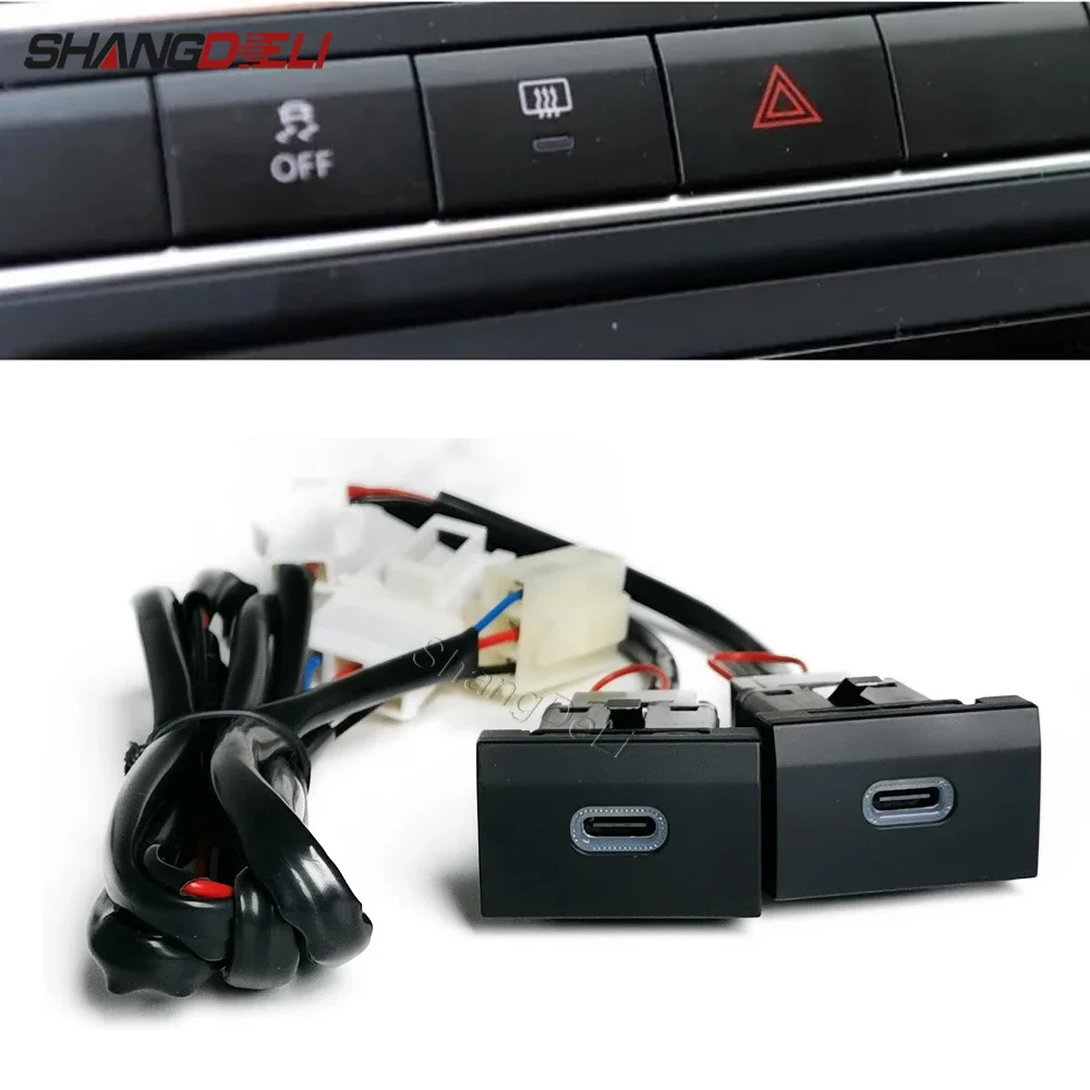 Check out 12V/24V Car Dual Type C PD Charger Socket Charging Outlet Power Phone Adapter Fit For POLO 2011-2013 Car Accessories right now.