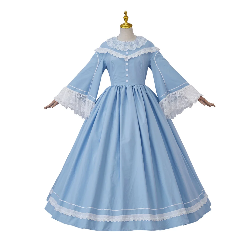Constructed for costume use, the dress balances historical styling with practical wearability for modern events. It’s suitable for reenactors, theater companies, and anyone seeking an evocative period look without detailed historical replication. Pair with period-appropriate accessories and hairstyles to complete the ensemble for performances, photo shoots, or themed gatherings.