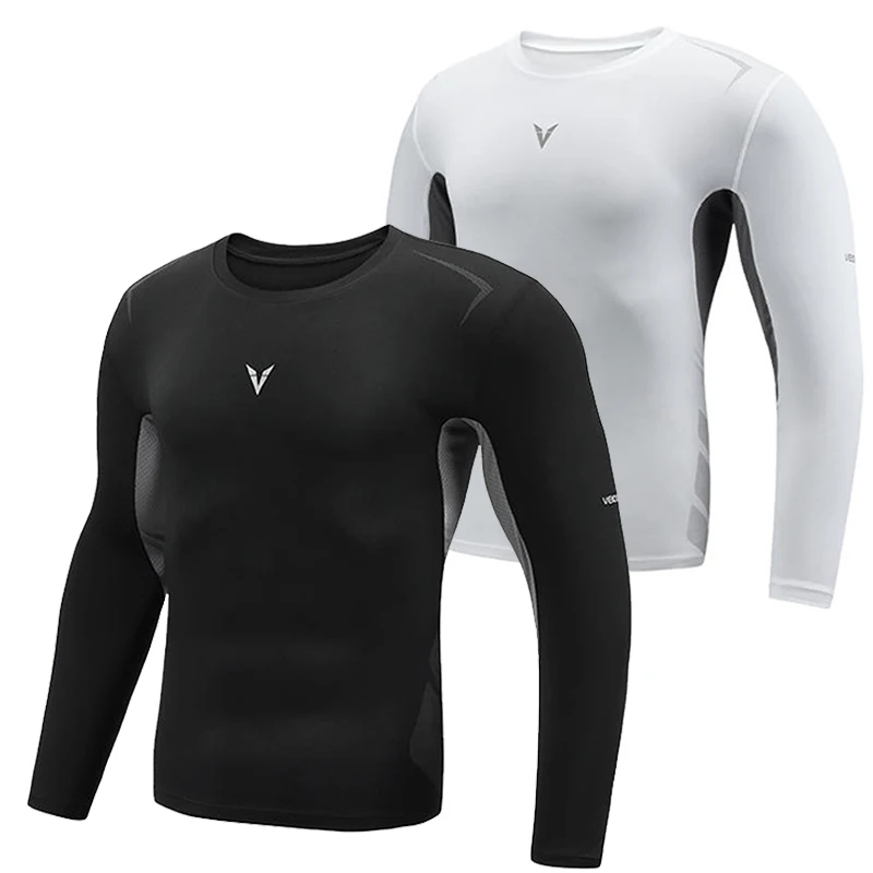 – Long sleeve, round neck compression-style fit