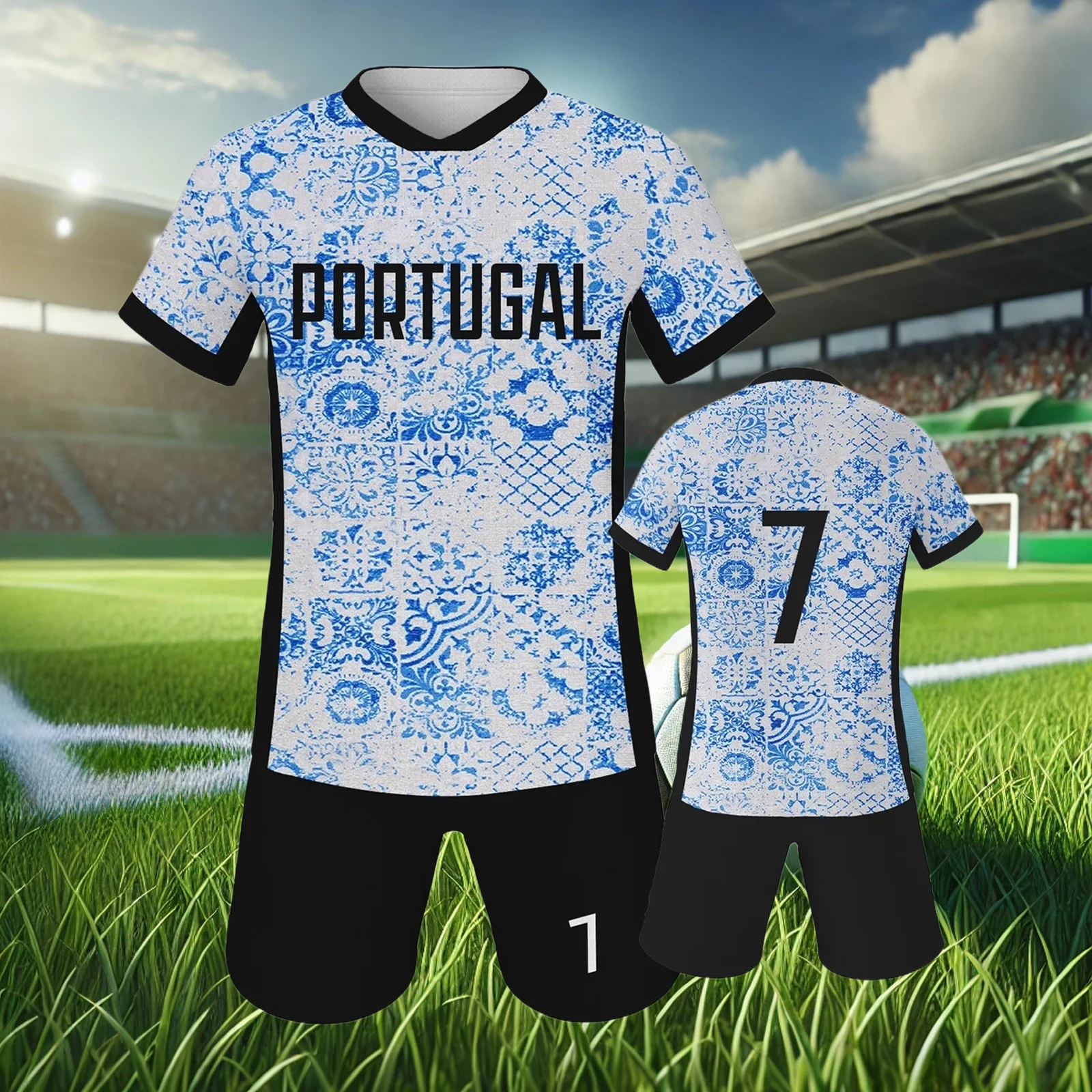 Sized for boys and girls, the set features a classic Portugal-inspired look that suits everyday training, casual matches, or team activities. The simple construction and durable stitching make it easy to wear and wash, while the flexible material allows freedom of movement for running, kicking, and training drills.