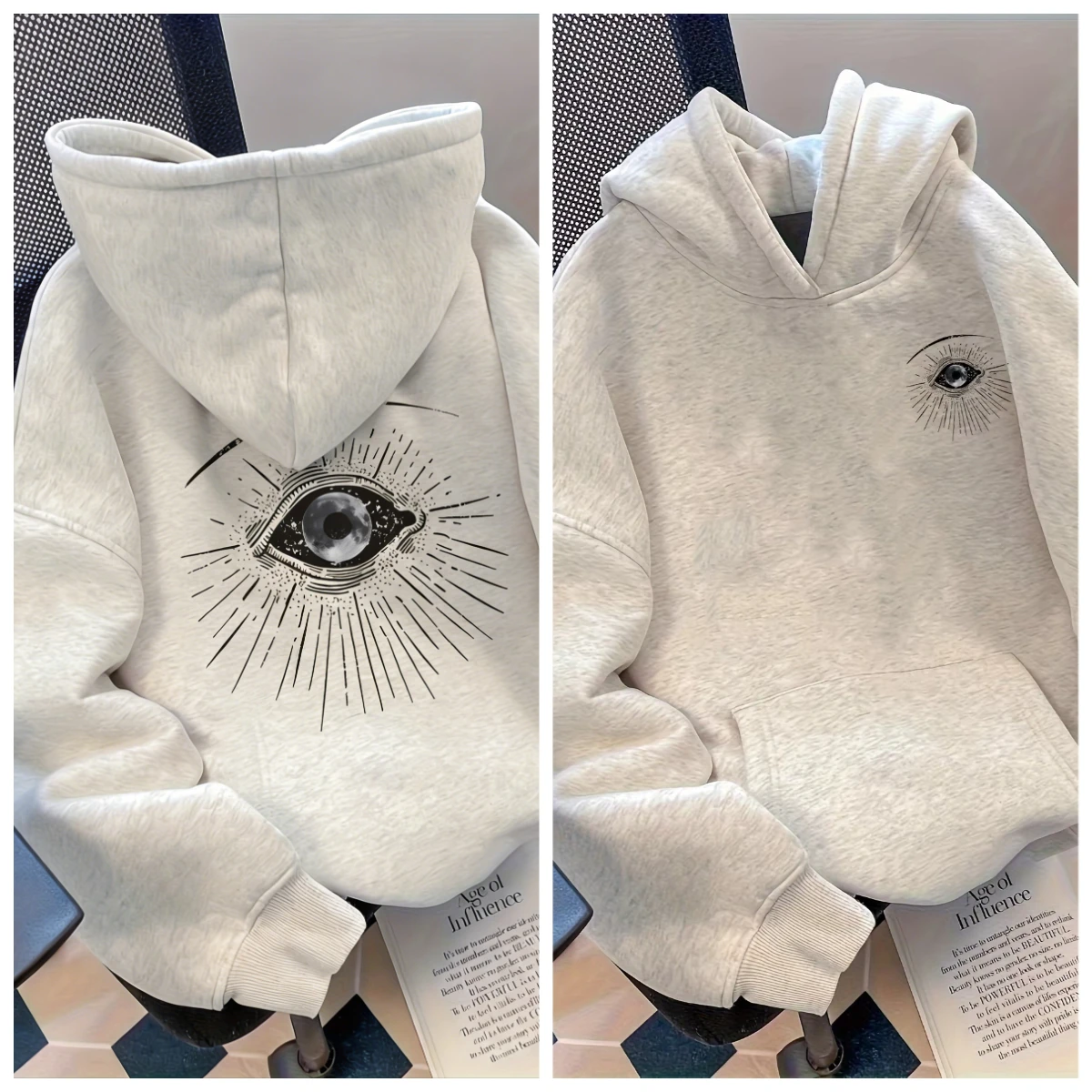 Take a look at 2025 Autumn/Winter New Men’s Women’s Luxury High-end Leisure Trendy Versatile White Grey Big Eye Printed Couple Cotton Hoodie.