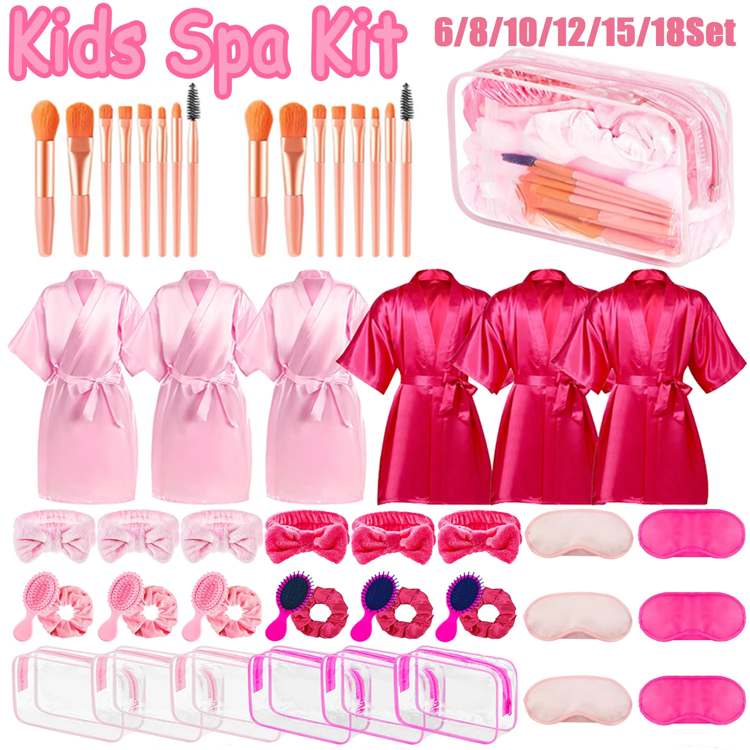 Make every birthday or sleepover feel extra special with this set of 6-18 spa party robes for girls. Crafted from smooth satin-like fabric, these lightweight robes are designed for comfort during makeup play, pampering sessions, and cozy slumber party fun. The cheerful pink color and classic kimono style make them an easy choice for coordinated group photos and party activities.