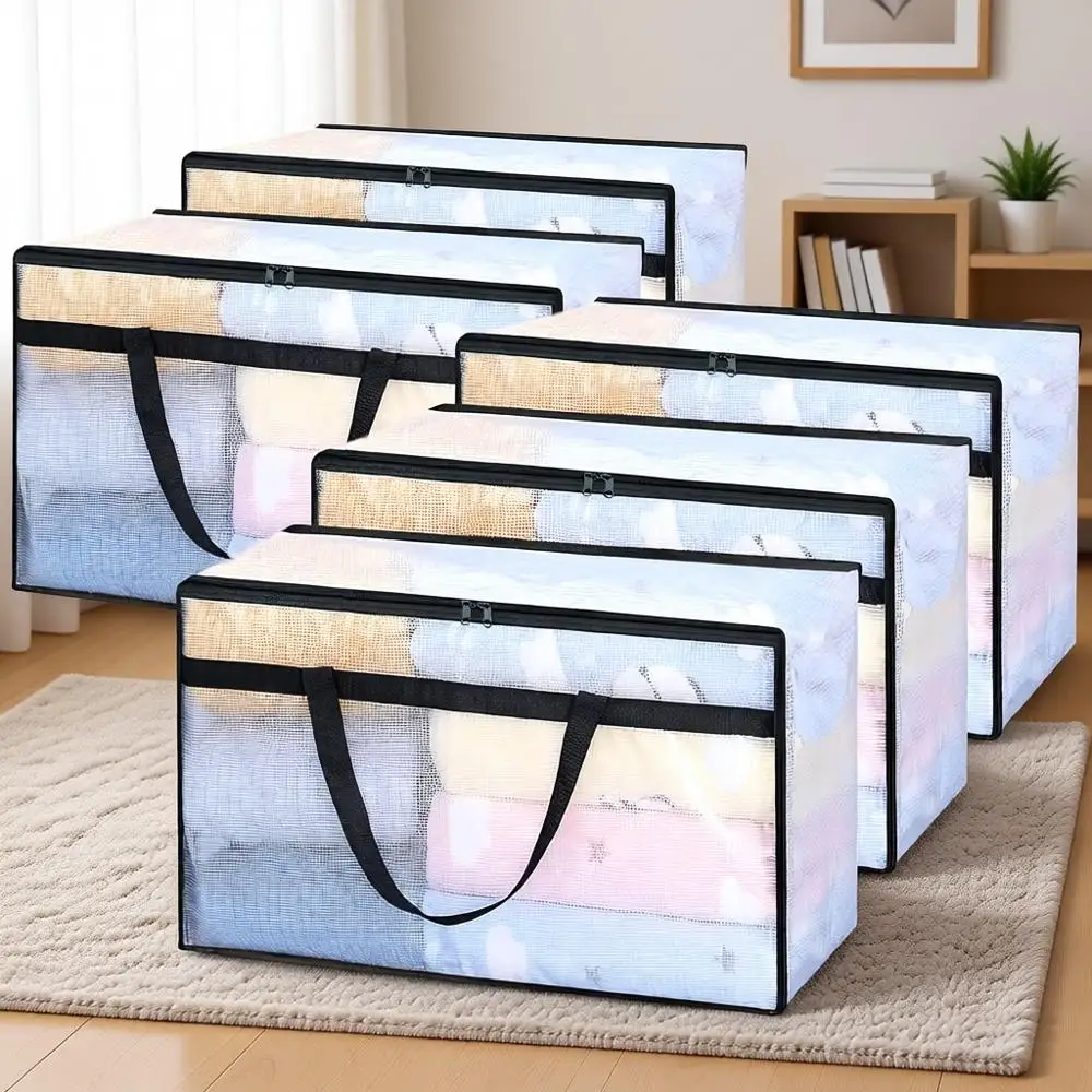 Keep linens, seasonal clothing, and bulky bedding neatly stored with these 60L clear storage bags. Constructed from tear-resistant woven material, each bag features a durable zipper closure and reinforced handles for easy carrying and stacking. The clear design allows quick visibility of contents, making it simple to find items without unpacking.