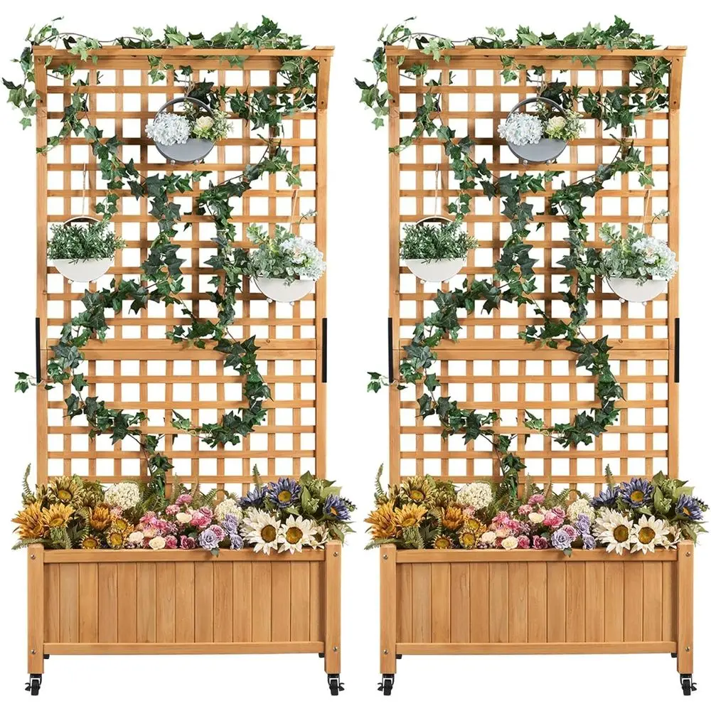This 72-inch Tall Outdoor Garden Planter with Trellis is designed to bring vertical interest and functional planting space to patios, balconies, and garden beds. Crafted in a light brown finish, the planter pairs a roomy planting trough with an integrated trellis to support climbing plants, vines, and espaliered varieties. The tall profile helps maximize planting area where ground space is limited and creates an attractive living screen or focal point.