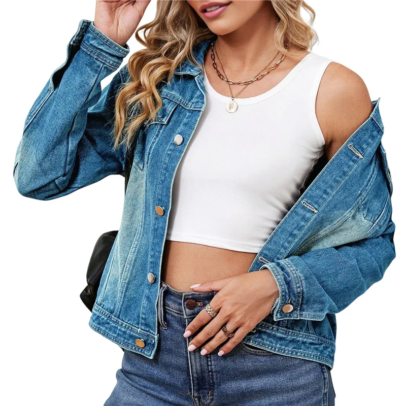 The ABRT-Female Basic Button Down Stretch Fitted Long Sleeves Denim Jean Jacket is a versatile layering piece designed for everyday wear. Cut in a fitted silhouette with long sleeves and a button-down front, this jacket offers a clean, classic look that pairs easily with casual and smart-casual outfits. The stretch denim construction provides comfortable movement while maintaining a structured shape.