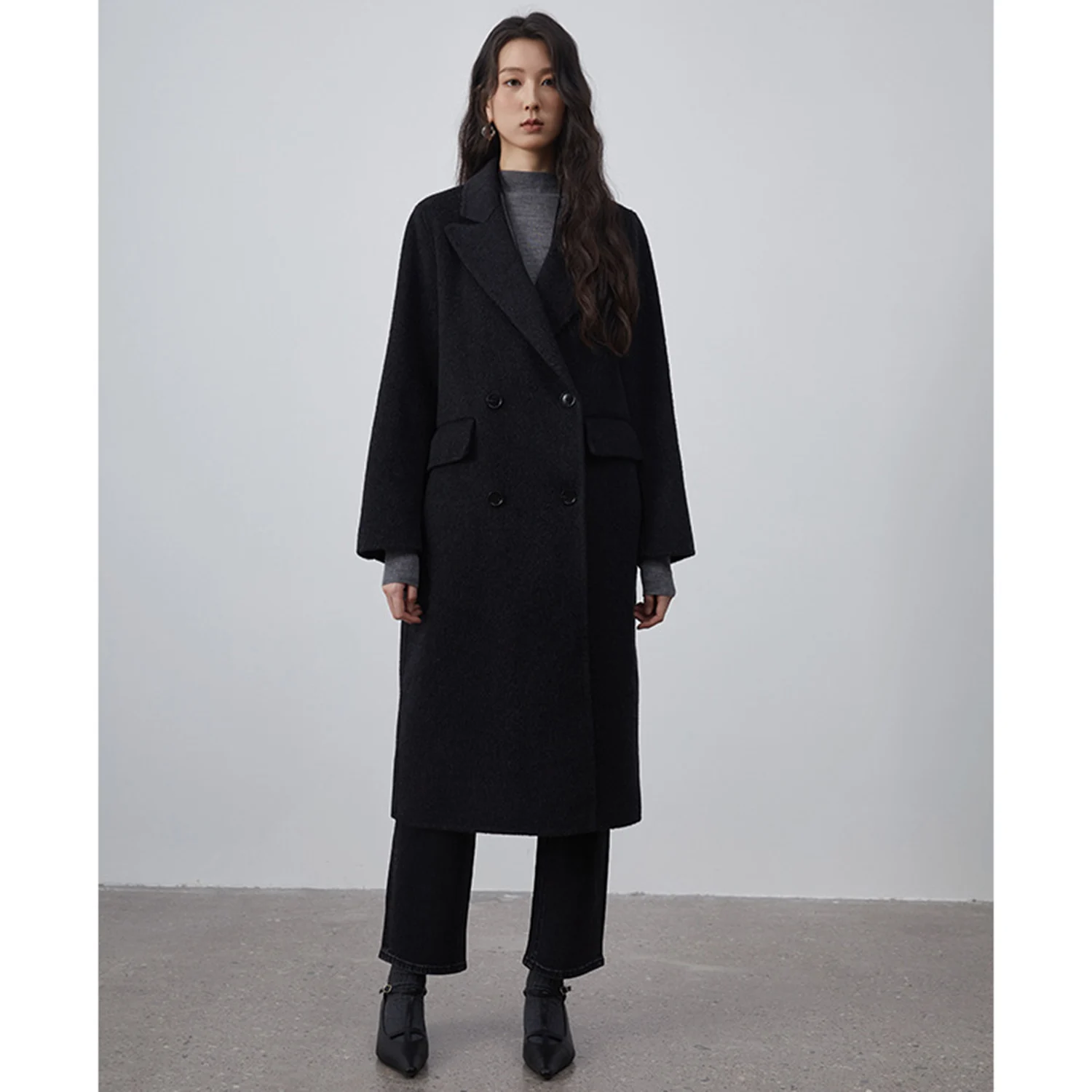 – Longline, double-breasted design
