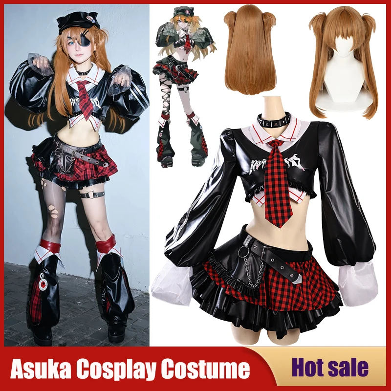 Anime New EVA Asuka Langley Soryu Cosplay Costume Shikinami Asuka Langley EVA Rock Band Outfit Girl Women Top Skirt Wig Sexy Set