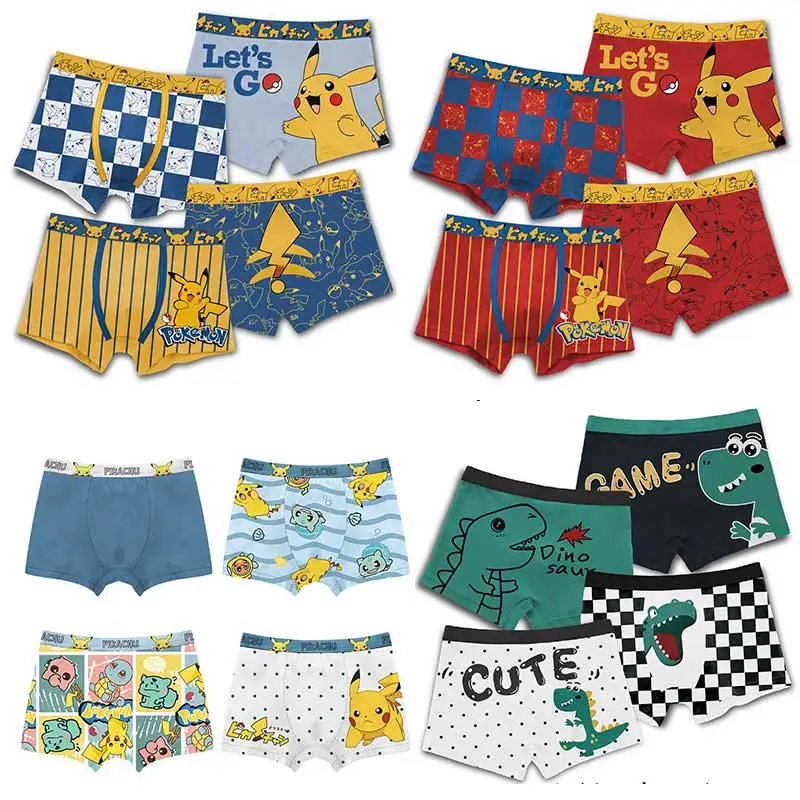 Soft, breathable cotton underwear designed for active kids, featuring playful Pikachu-themed prints that appeal to young Pokémon fans. These boys’ briefs are made from pure cotton for everyday comfort, helping keep skin dry and comfortable during play, school, and sleep. The elastic waistband provides a secure, flexible fit without digging in, while the reinforced stitching supports durability through frequent wear and washing.