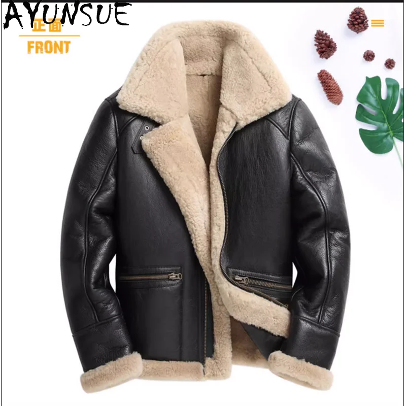 AYUNSUE Natural Sheepskin Wool Coat 25 Winter Jacket Mens Fur Jackets Coats Motocycle& Biker Genuine Leather Jacket Men Clothes