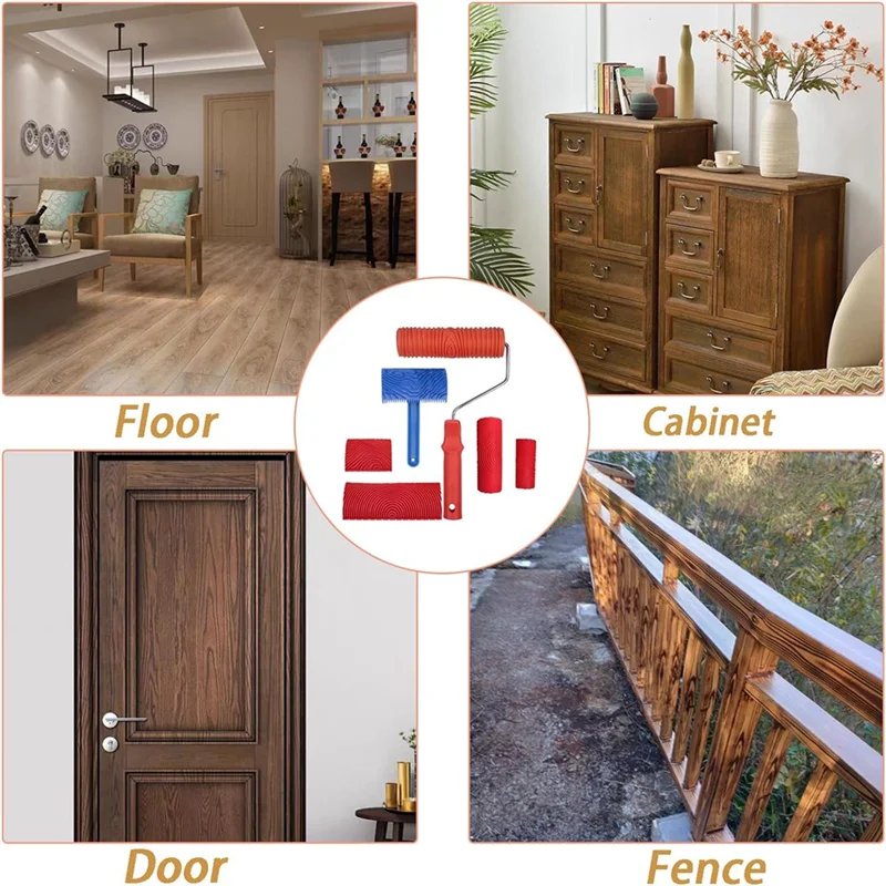 BAAG-8Pcs Wood Grain Tool Set Wood Texture Paint Tool DIY Rubber Wood Pattern Painting Roller For Wall Room Art Decoration
