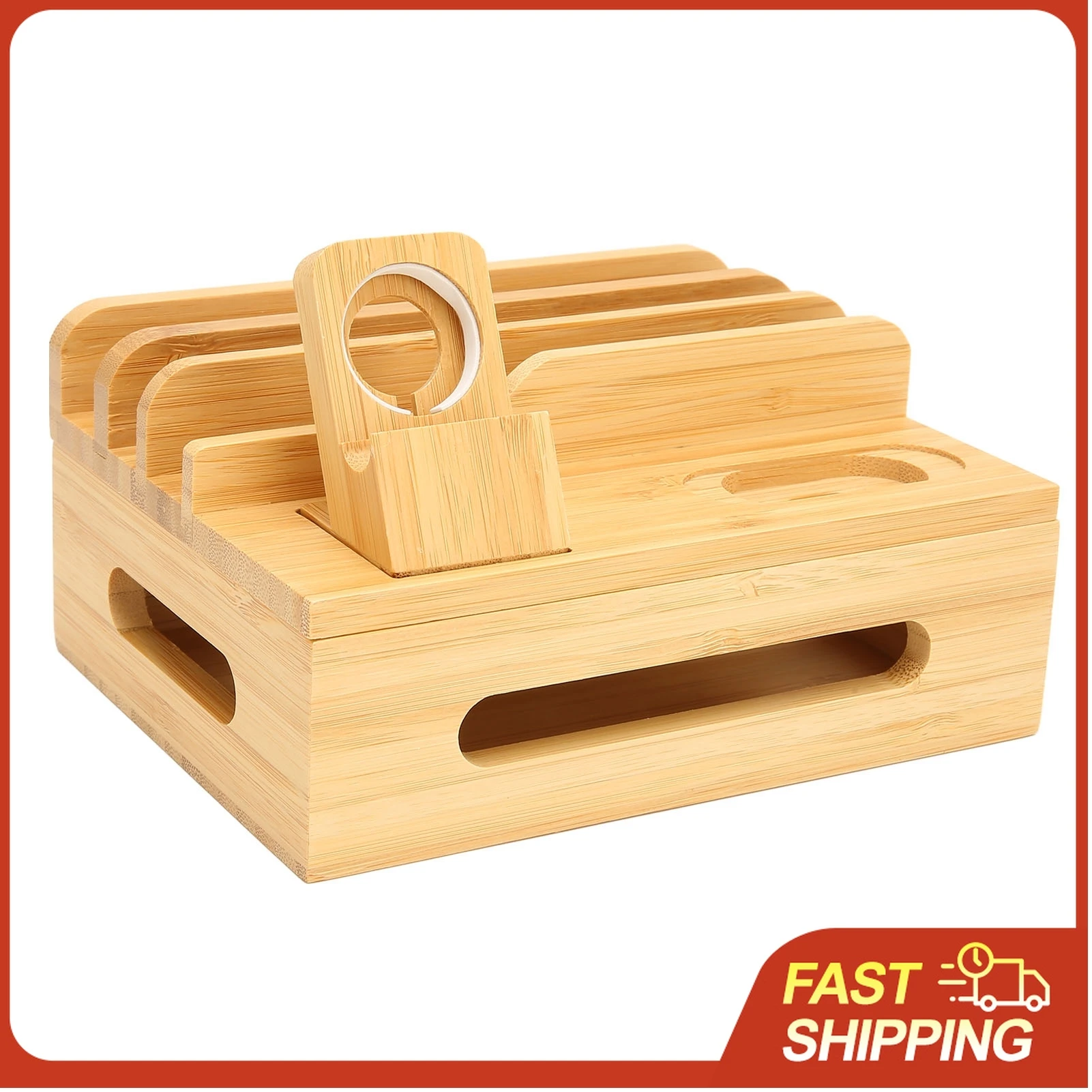This charging dock blends functionality with a minimalist aesthetic that suits home offices, bedside tables, or shared charging areas. The bamboo surface is durable and gentle on devices, helping prevent scratches and sliding. Cable routing is straightforward, so you can position chargers neatly and reduce clutter.