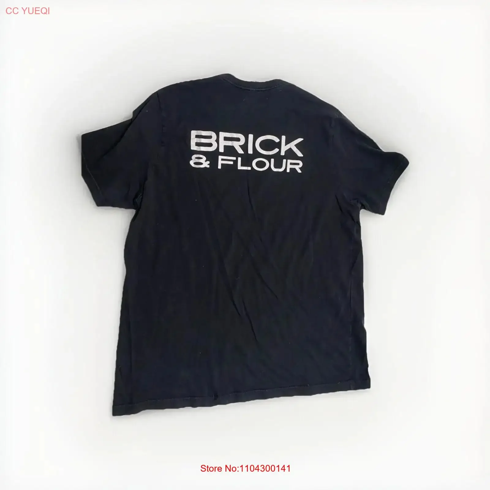 BRICK FLOUR Black T-Shirt — Cafe Work Uniform, 100% Cotton, Size XL. A vintage-washed graphic tee designed for everyday wear in hospitality and casual work settings. The breathable cotton construction and relaxed cut provide comfort during long shifts, while the soft, broken-in finish gives an authentic lived-in look. Slight stretch in the fabric allows for easy movement behind the counter or during active service.