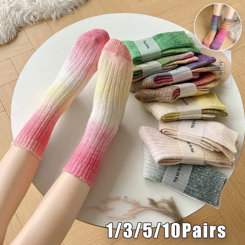 Cozy and stylish, these Chic Tie Dye Wool Socks bring a playful gradient look to your winter wardrobe. Crafted with a soft wool-blend exterior and a plush fleece lining, they keep feet warm and comfortable during chilly days while the stacked ankle height pairs well with boots and casual shoes. The mismatched tie-dye pattern adds a trendy, individualized touch to each pair without overwhelming your outfit.