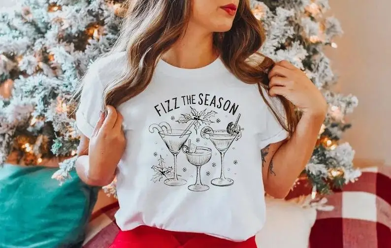 Get into the festive mood with the Christmas Cheers Drinks Sweater Party T-Shirt. Designed for holiday gatherings, this casual sweater tee combines seasonal charm with a playful nod to wine, fizz, and good times. Its relaxed fit makes it easy to layer over long sleeves or wear solo for parties, dinners, and cozy nights by the tree.
