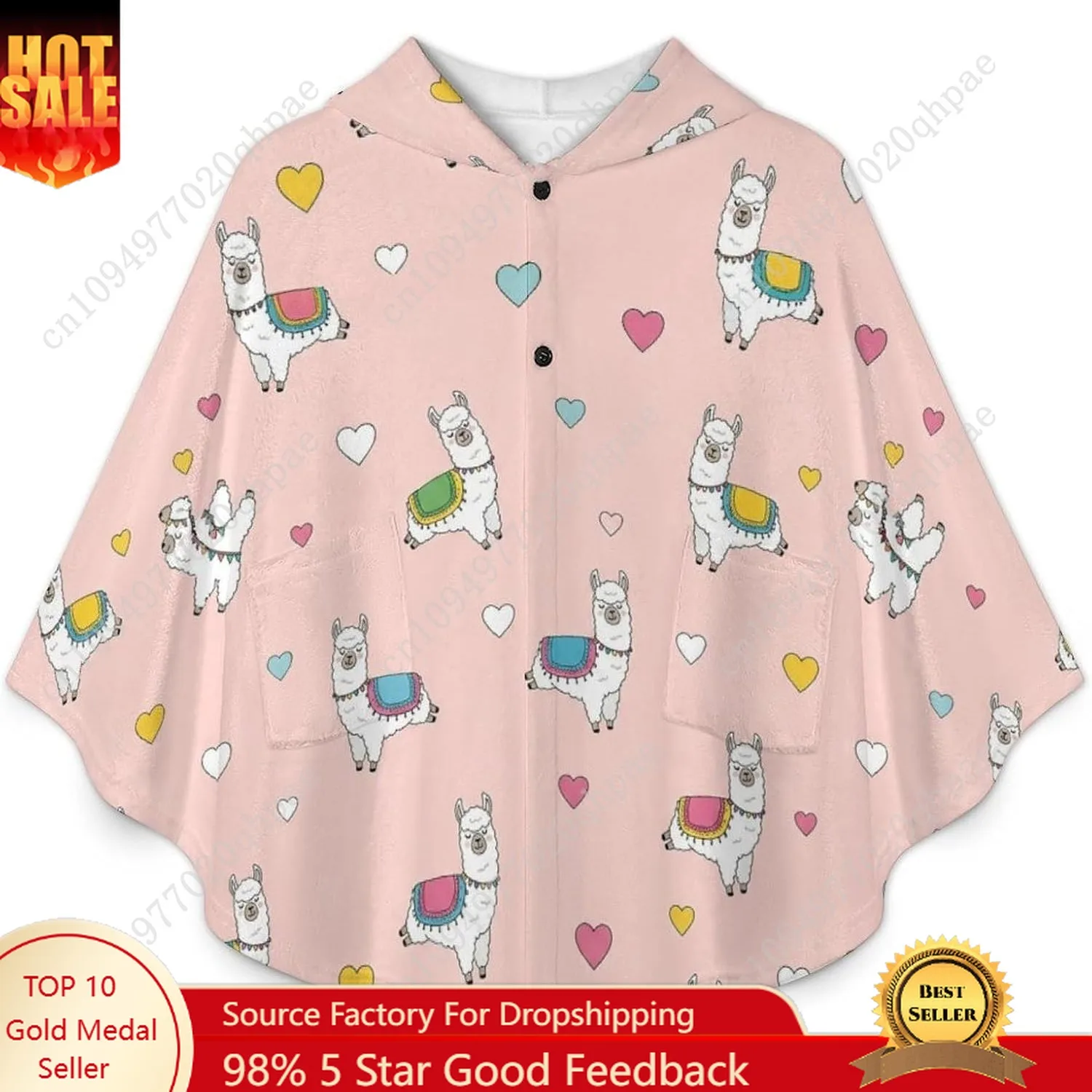 Wrap up in playful comfort with the Cozy Flannel Blanket Sweater. This oversized hoodie features a charming llamas-and-hearts print that brings a fun, youthful touch to chilly days. The soft flannel fabric delivers a warm, snuggly feel while the roomy cut lets kids and teenagers layer underneath without feeling restricted.