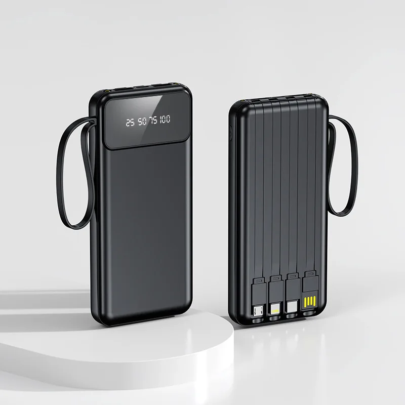 Compact yet powerful, this Cross-border Large-Capacity 4-Wire Power Bank delivers reliable mobile power when you need it most. With a 20,000mAh capacity and a clear digital display, it shows remaining charge at a glance so you can plan recharges confidently. The self-contained 4-wire design keeps cables organized and ready, making it ideal for travel, commuting, or daily use.