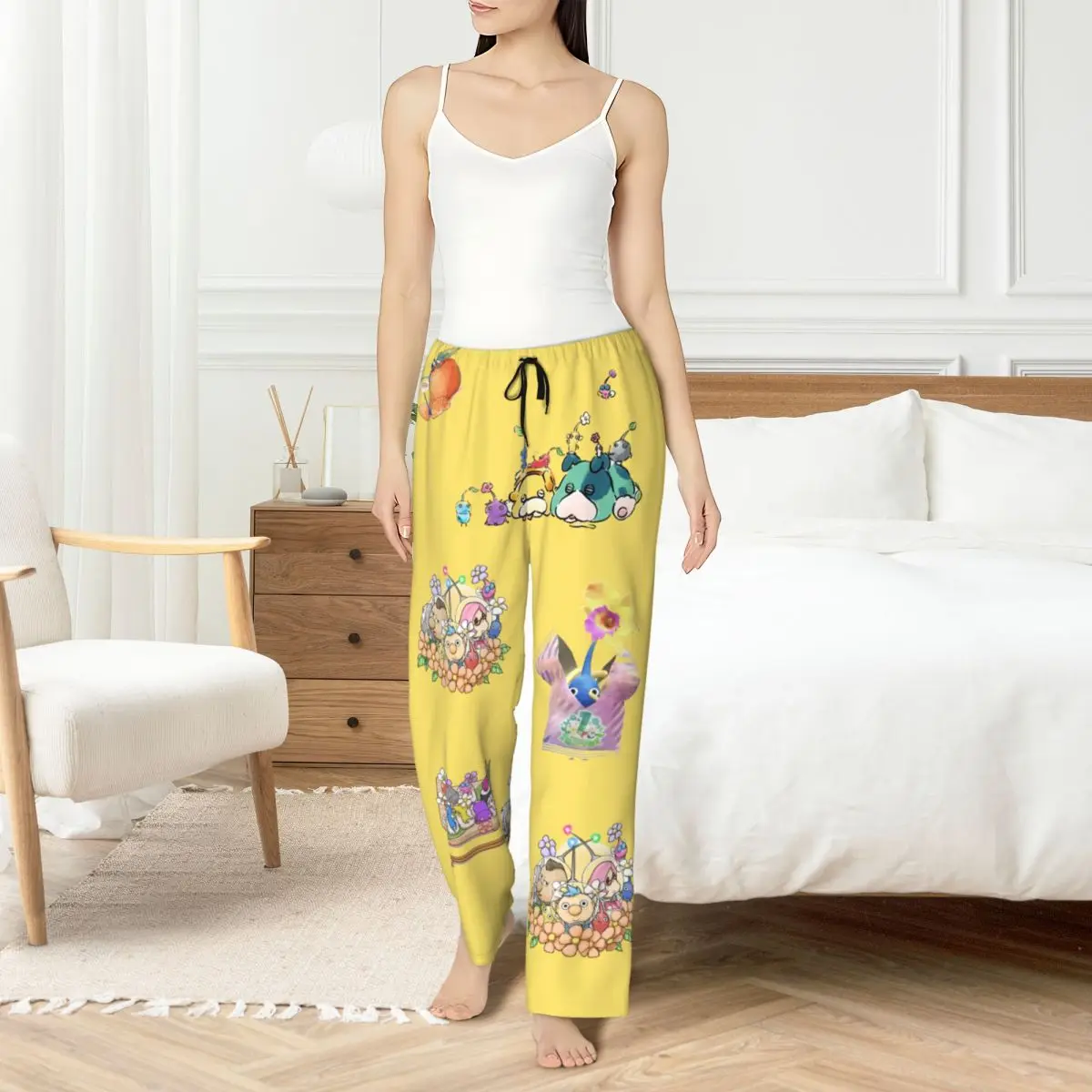 Custom Cute Pikmins Gaming Pajama Pants Women Anime Cartoon Lounge Sleep Drawstring Sleepwear Bottoms with Pockets