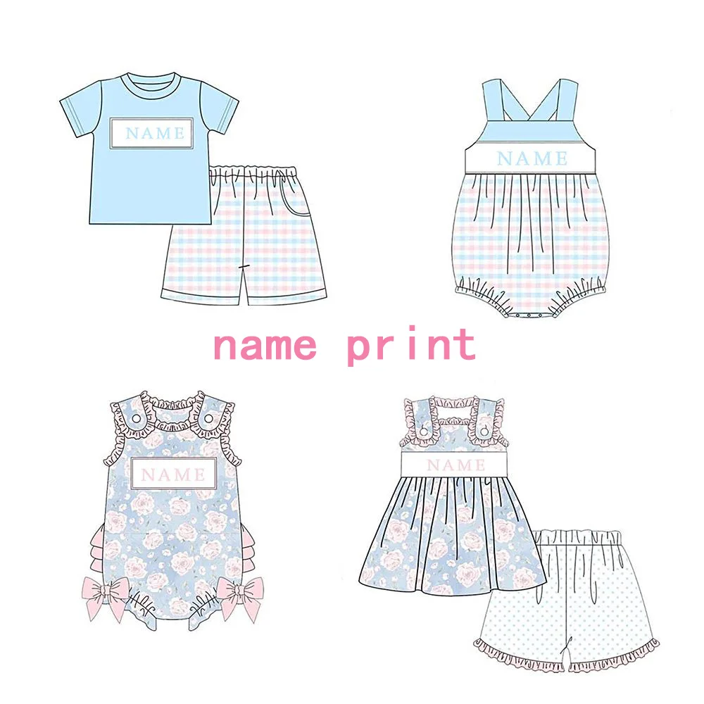 Order a single romper or a coordinated set to keep little ones looking stylish together. Please provide the custom name at checkout and allow for standard processing time for personalized items.