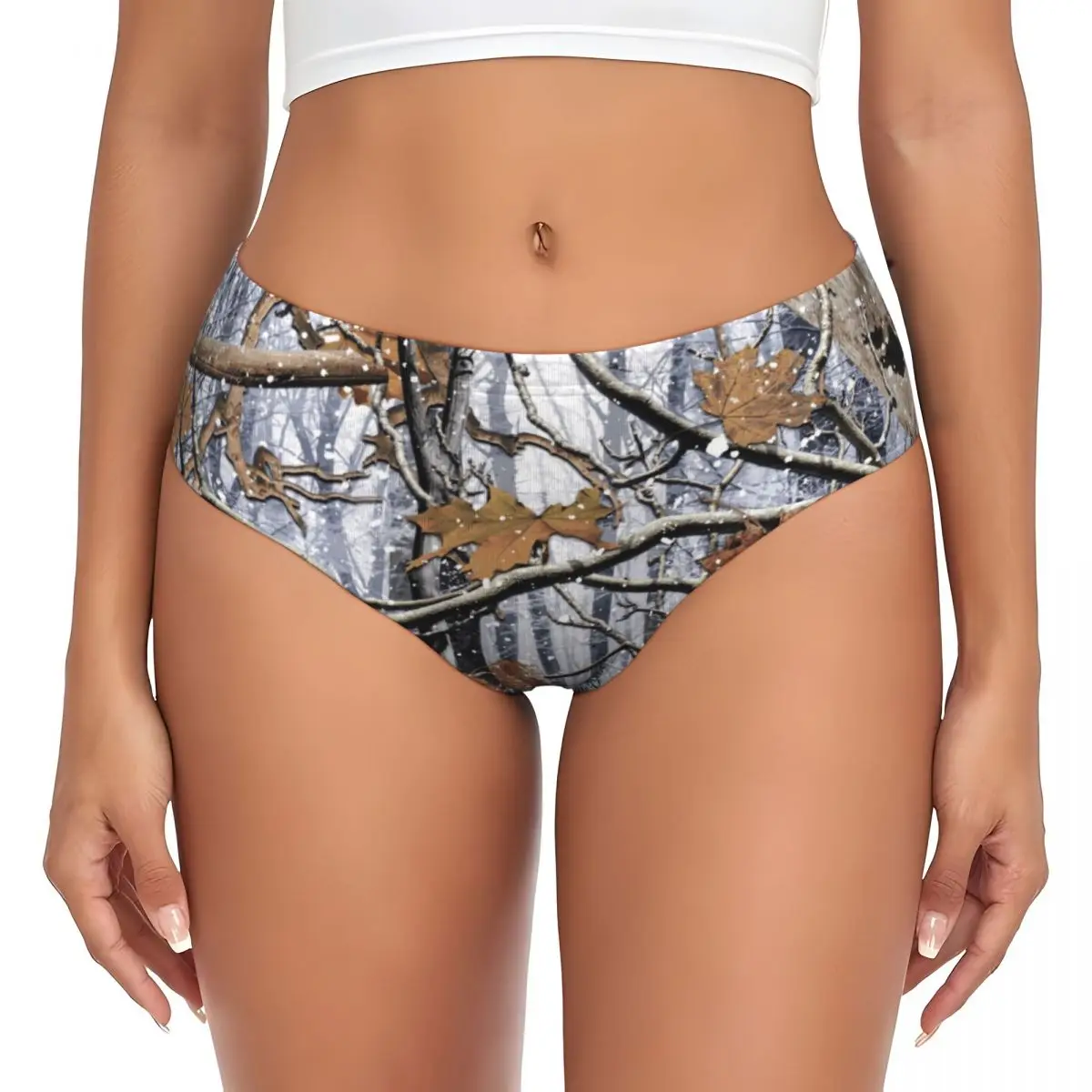 Custom Women’s Hunting Camo Tree Camouflage Snow Pattern Panties Underwear Female Comfort Brief Panties Briefs Underpants