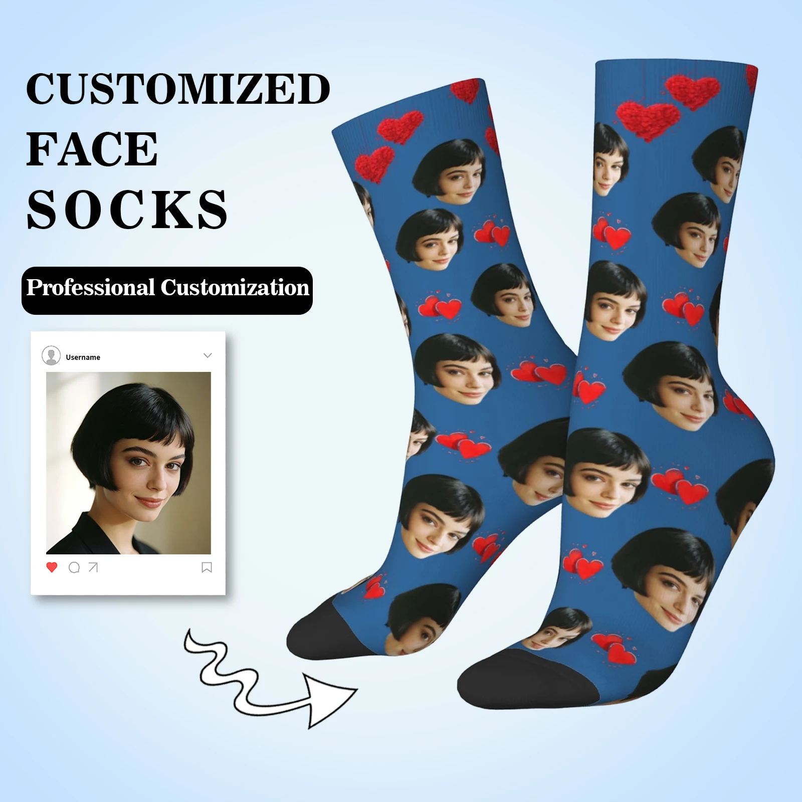 Turn ordinary socks into a playful, personalized accessory with these Customized Face-Shaped Socks. Ideal for gifting or self-expression, each pair features a clear photo print so a face or favorite image becomes the focal point. The unisex design fits a wide range of styles and occasions, from casual wear to novelty fun.