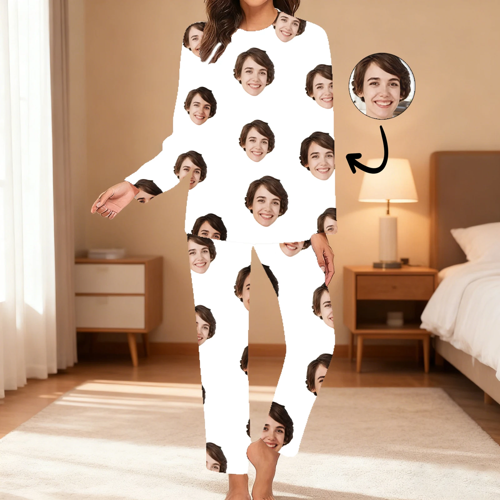 Make bedtime personal with this Customized Home Sleepwear Set — a thoughtful, cozy option for women and families. Each set can be personalized with a face, creating a playful and memorable pajama ensemble perfect for holiday mornings, Christmas photos, or relaxed evenings at home. The design focuses on comfort and a flattering fit suitable for lounging and sleep.