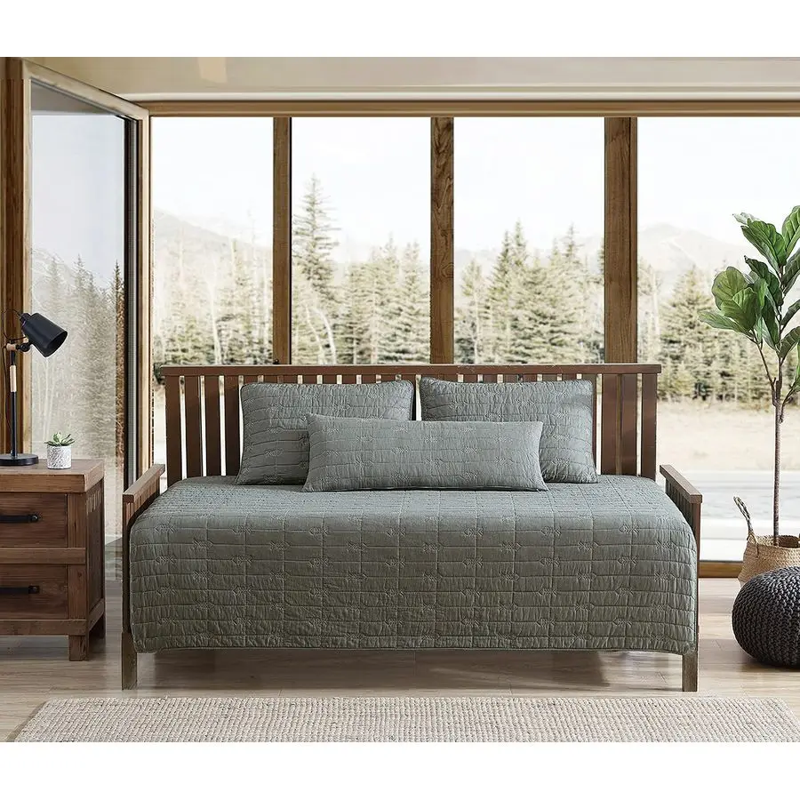 Bring calm, tailored style to your daybed with this reversible cotton bedding set in Troutdale Green. Crafted from soft, breathable cotton, the set includes a reversible cover, matching shams, and a decorative pillow cover for a cohesive, layered look. The reversible design lets you switch-up the aesthetic easily—perfect for refreshing a room without replacing the entire set.