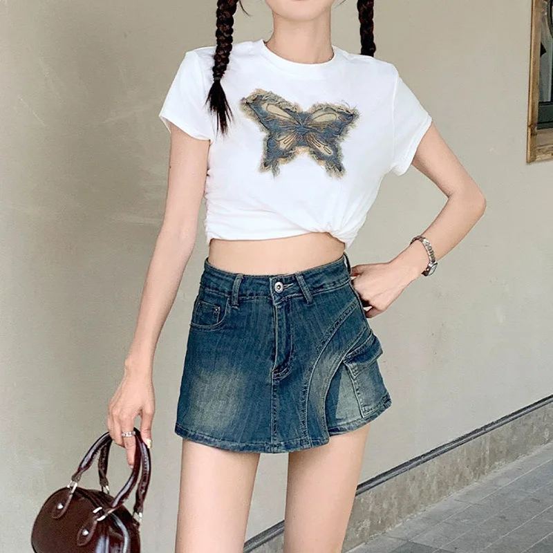 A versatile essential for casual wardrobes, this Denim Skirt for Women blends the ease of shorts with the look of a mini skirt. Crafted with a washed denim finish and spliced patchwork details, it features a high waist and zipper fly for a secure, flattering fit. The wrap-style front and distressed accents create a lived-in, modern vibe that pairs well with tees, tanks, or lightweight sweaters.
