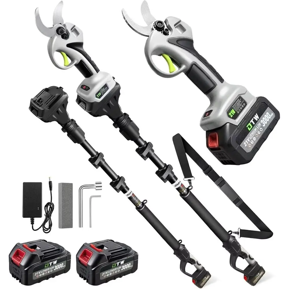 This kit includes two 21V 3.0Ah batteries to extend runtime during longer tasks and simplify swapping when one battery runs low. Controls are straightforward for comfortable, controlled cutting, and the design emphasizes user convenience and portability for seasonal pruning, shaping, and light maintenance.