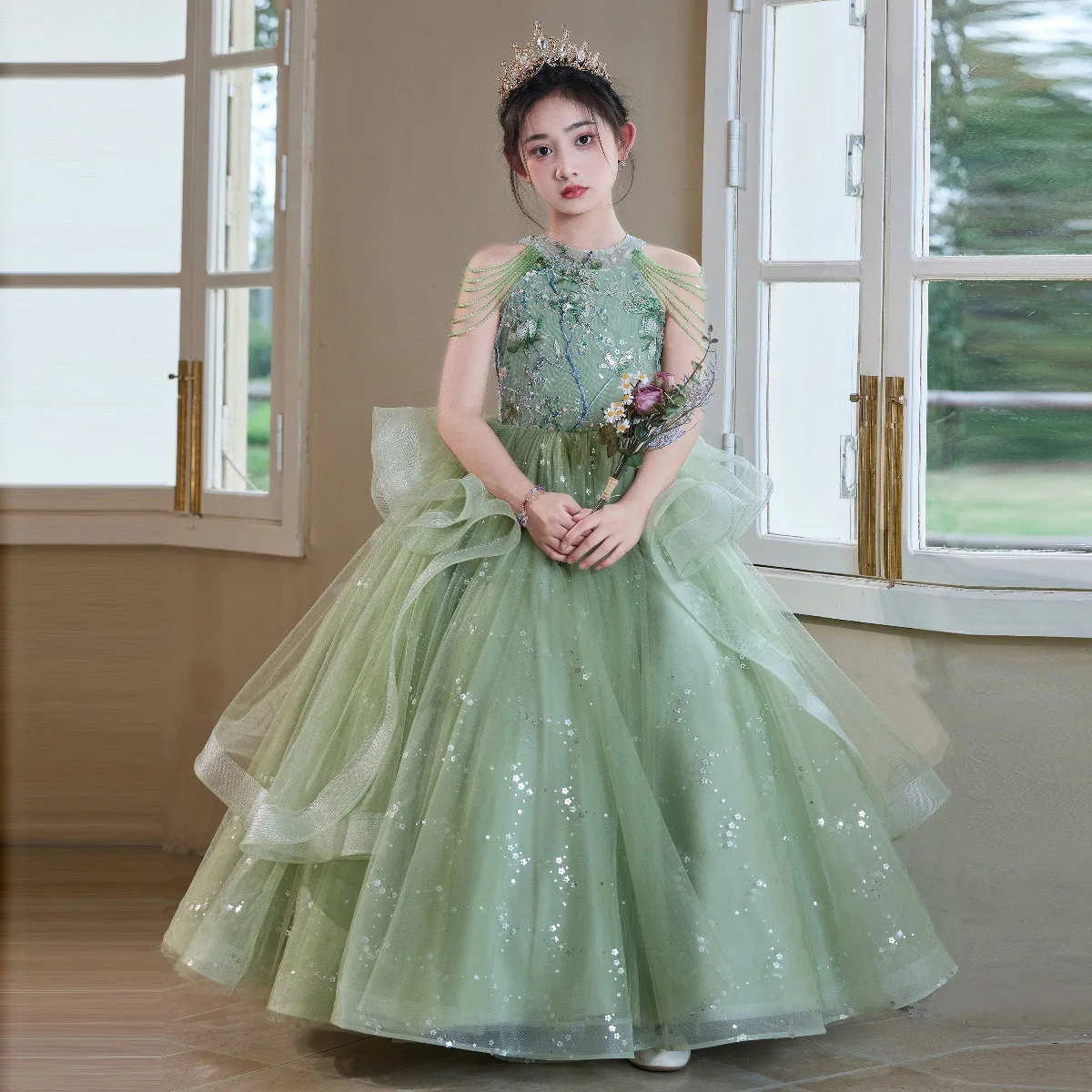 Comfortable enough for prolonged wear, the gown balances style and ease so she can enjoy dancing and photos without fuss. Ideal for pageants, flower girl duties, or special-occasion portraits, it pairs well with simple accessories and ballet flats or dressy sandals.