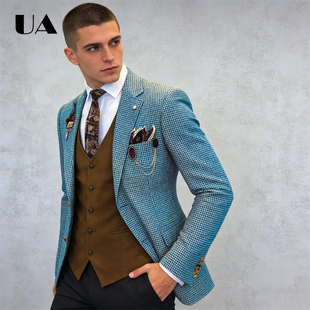 Elevate your formal wardrobe with this Fashionable Three-Piece Suit for Men. This tailored set includes a jacket, vest, and pants in a refined plaid pattern that balances classic elegance with modern style. Designed for business events, proms, weddings, or any occasion that calls for a polished look, the ensemble offers a cohesive silhouette that is easy to accessorize.