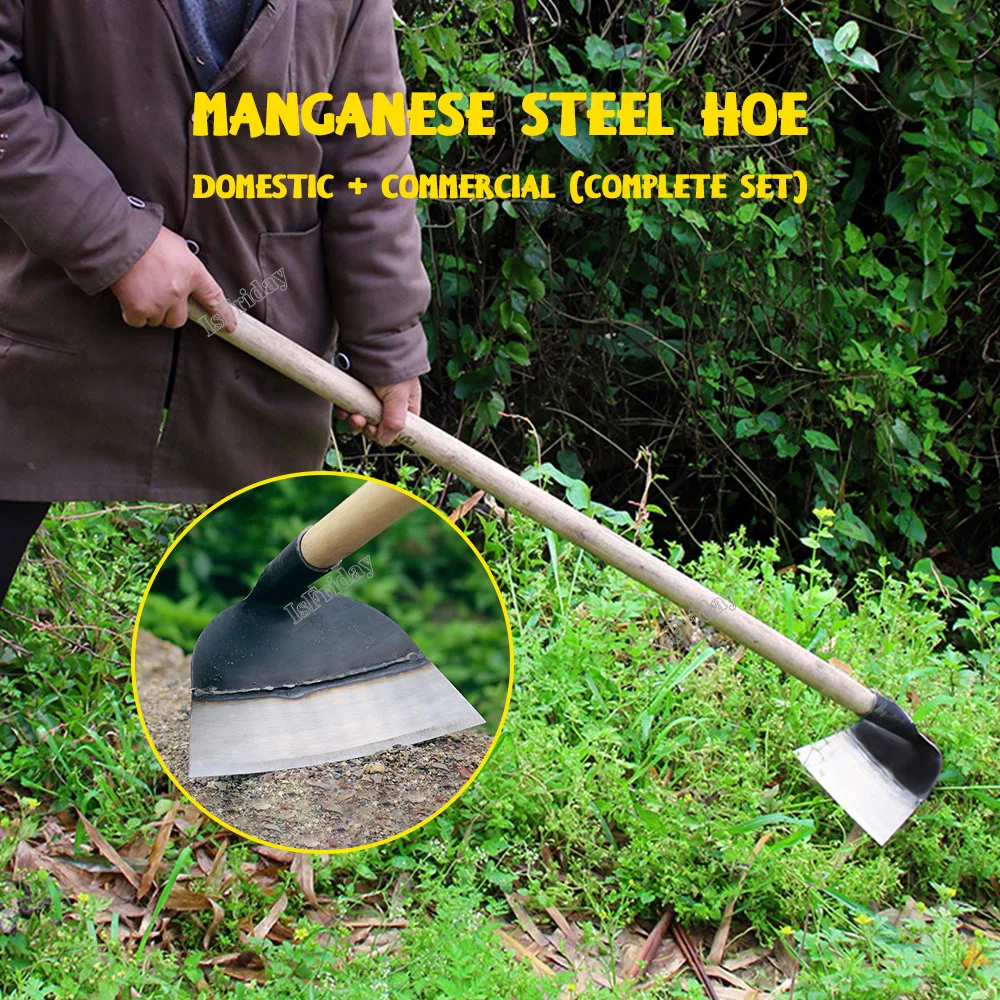 This sturdy Garden Hoe is a practical hand tool designed for everyday gardening tasks, from weeding to bed preparation. Forged from manganese steel for durability, the blade retains strength under regular use while being suitable for breaking up soil, slicing through roots, and clearing unwanted vegetation. Its compact machete-style head provides control and precision when working around plants and in tighter spaces.