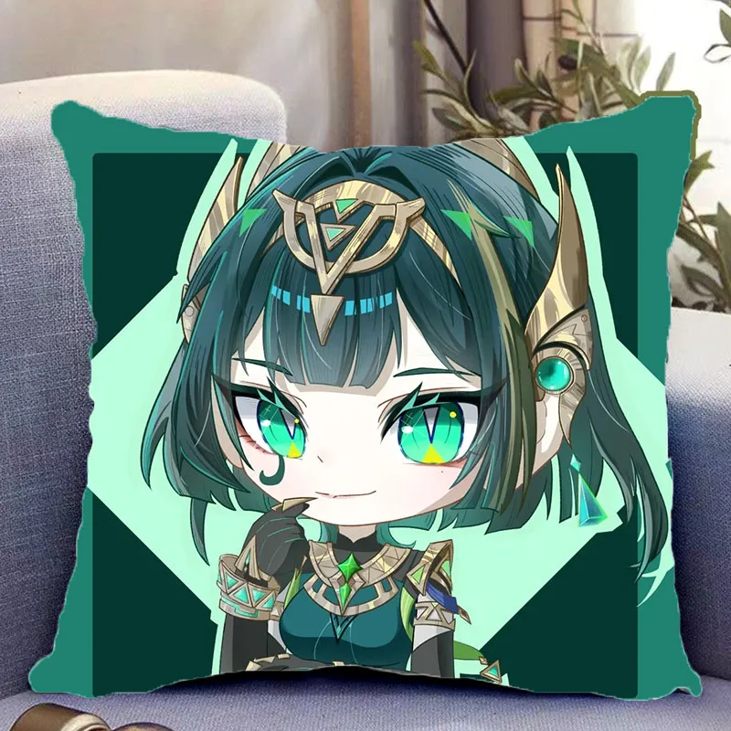 Genshin Impact Nefer Cosplay 2-sides Throw Pillow with Inner Home Sofa Decor Anime Cartoon Plush Cushion Pillow Xmas Gifts