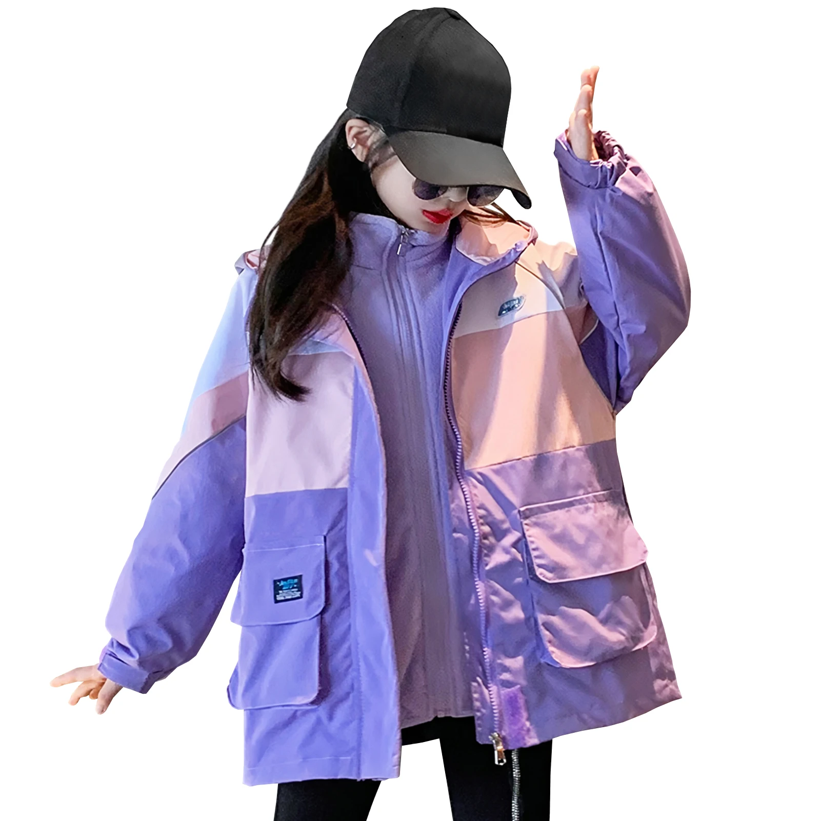 See Girls Jacket with Hood,Loose 2-Piece Fleece Liner Coat,Windproof Children’s Winter Outerwear,Warm Outdoor Sports Kids Jacket today.