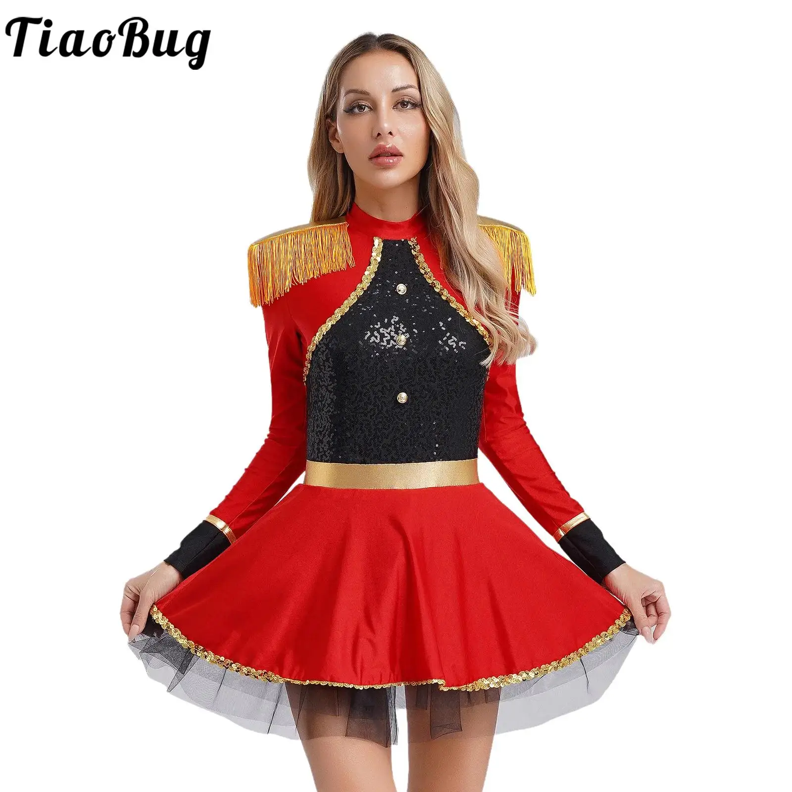 Step into the spotlight with this Halloween Women Circus Ringmaster Costume Bodysuit Dress. Designed for parties, dancewear, and carnival events, the ensemble combines a long-sleeve fringe leotard with an attached tutu-style skirt for a dramatic, stage-ready silhouette. Clean lines and theatrical fringe details give it a playful, vintage-inspired ringmaster look without extra bulk.