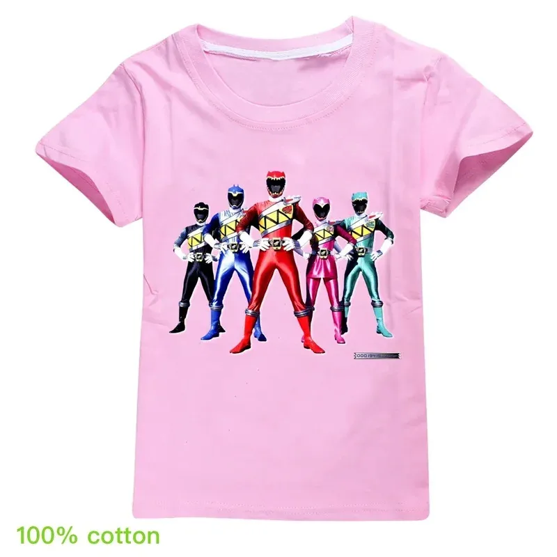 HAni 2025 New Kids Boys Powerful Ranger T-shirt Summer Short Sleeve Tops Children Birthday Party Carnival Halloween Costume ☆★ww