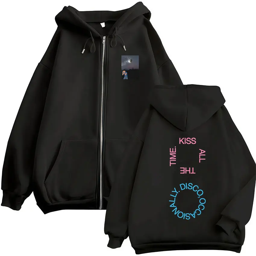 Elevate your streetwear rotation with the Harry Styles 2026 Kiss All Time Disco Occasional Tour Zipper Hoodie. Designed for autumn and winter, this oversized men’s jacket blends relaxed comfort with a fashion-forward silhouette. A full-length zipper and roomy hood provide easy layering, while the clean lines and tour-inspired motif add a distinctive, contemporary edge suited to everyday wear or casual nights out.