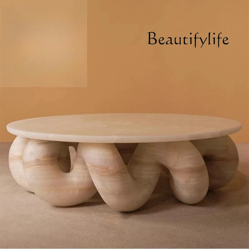 Discover Italian natural marble coffee table designer villa living room household light luxury side table small round stool today.