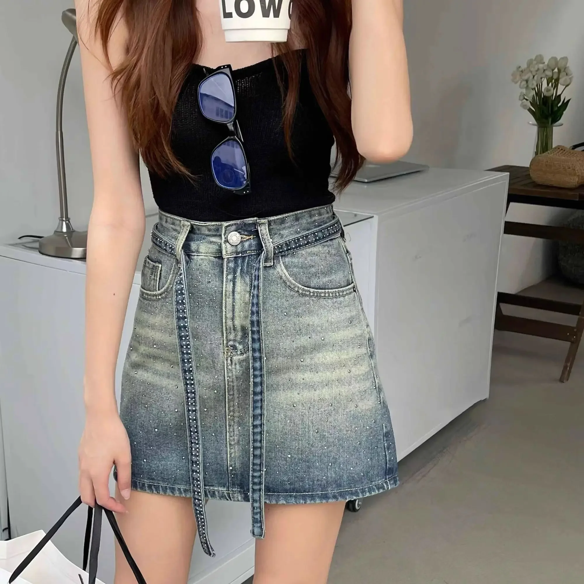 Explore Jeans Skirts For Women Gradient High Waist Woman Denim Skirt Modest Clothing Trend 2025 Korean Style New In Cheap Summer right now.