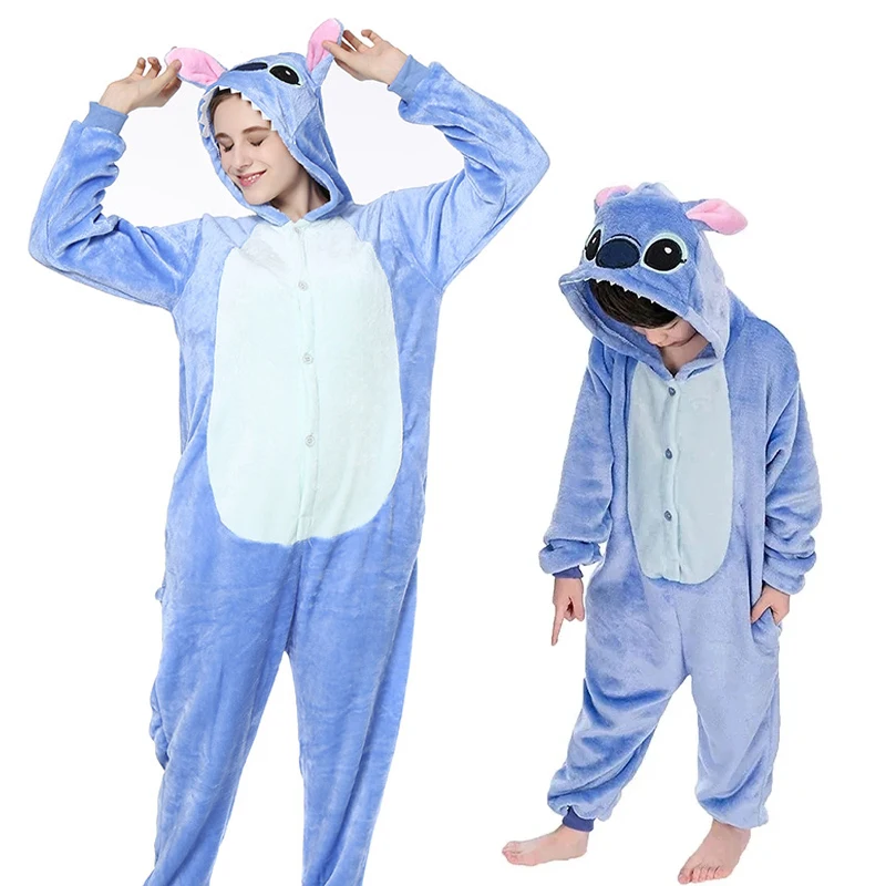 Bring playful comfort to sleepovers and parties with this Kids & Adult Anime Stitch Cosplay Jumpsuit. Crafted from soft flannel, this hooded onesie combines cozy warmth with a cute cartoon-inspired design—ideal for Halloween, Christmas, or everyday lounging. The relaxed fit allows freedom of movement for play, naps, or casual wear around the house.