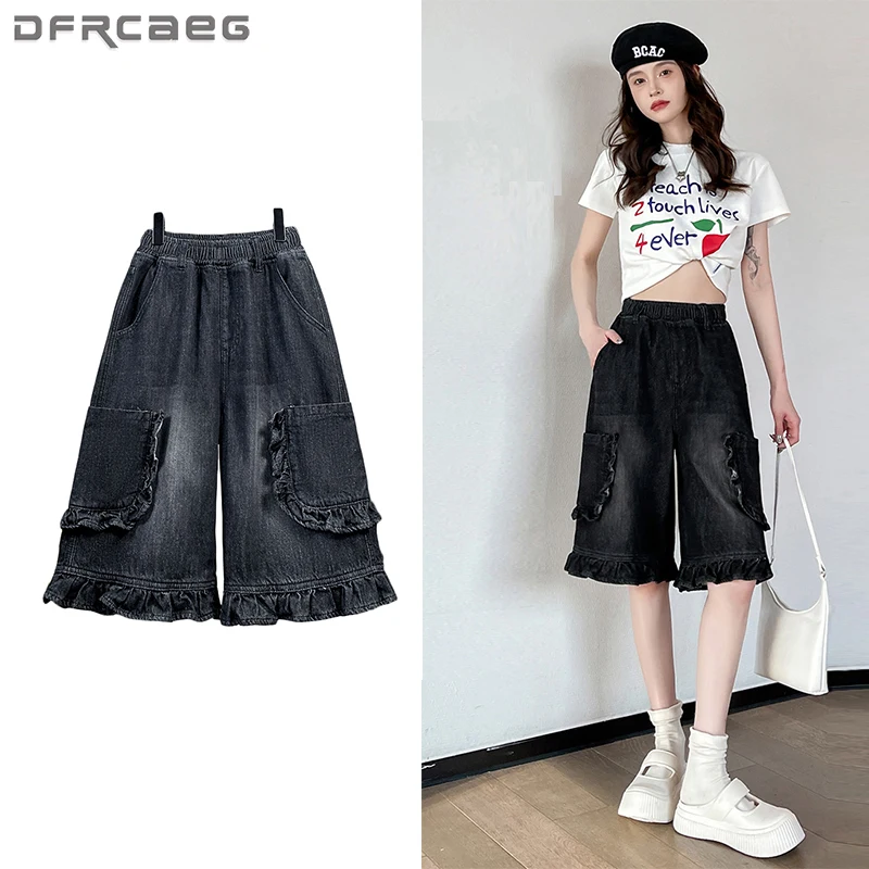These L-6XL Plus Size Summer Denim Shorts bring a modern Korean-inspired look to your warm-weather wardrobe. Designed with a high waist and half-length cut, they offer comfortable coverage while the wide-leg silhouette creates a relaxed, breathable fit ideal for everyday wear. The loose jeans-style construction balances casual ease with contemporary style.