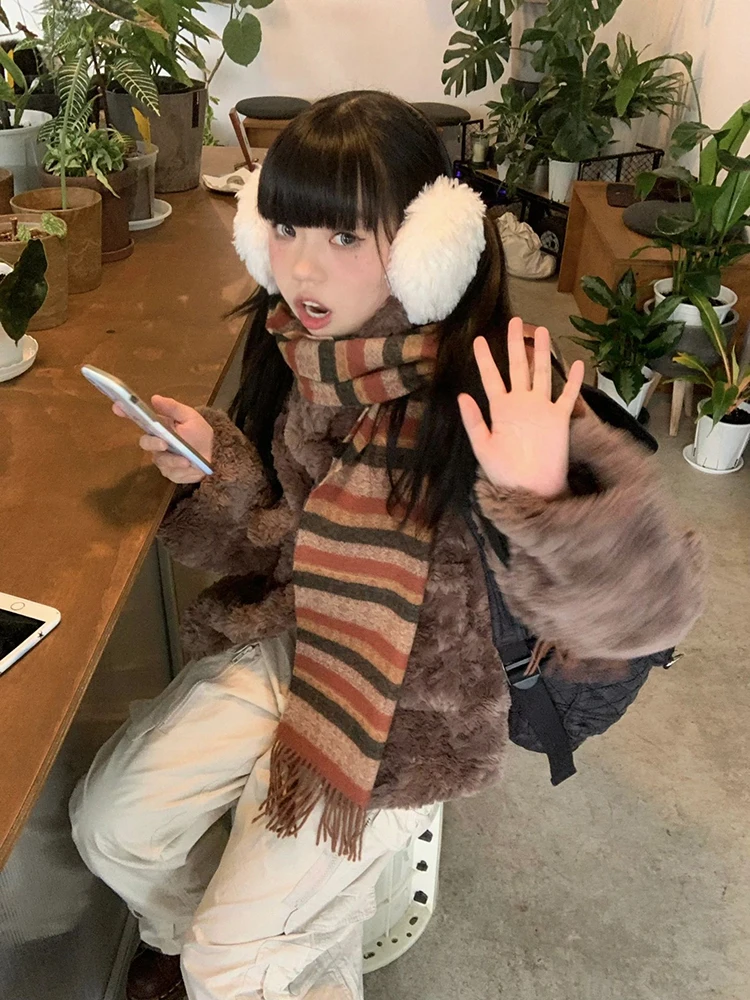 Lamb Wool Jacket Spring Woman Classic Fancy Retro Warm Thick Stylish Cozy Fashion Ladies Vintage Long Preppy Style Boyfriend Ins