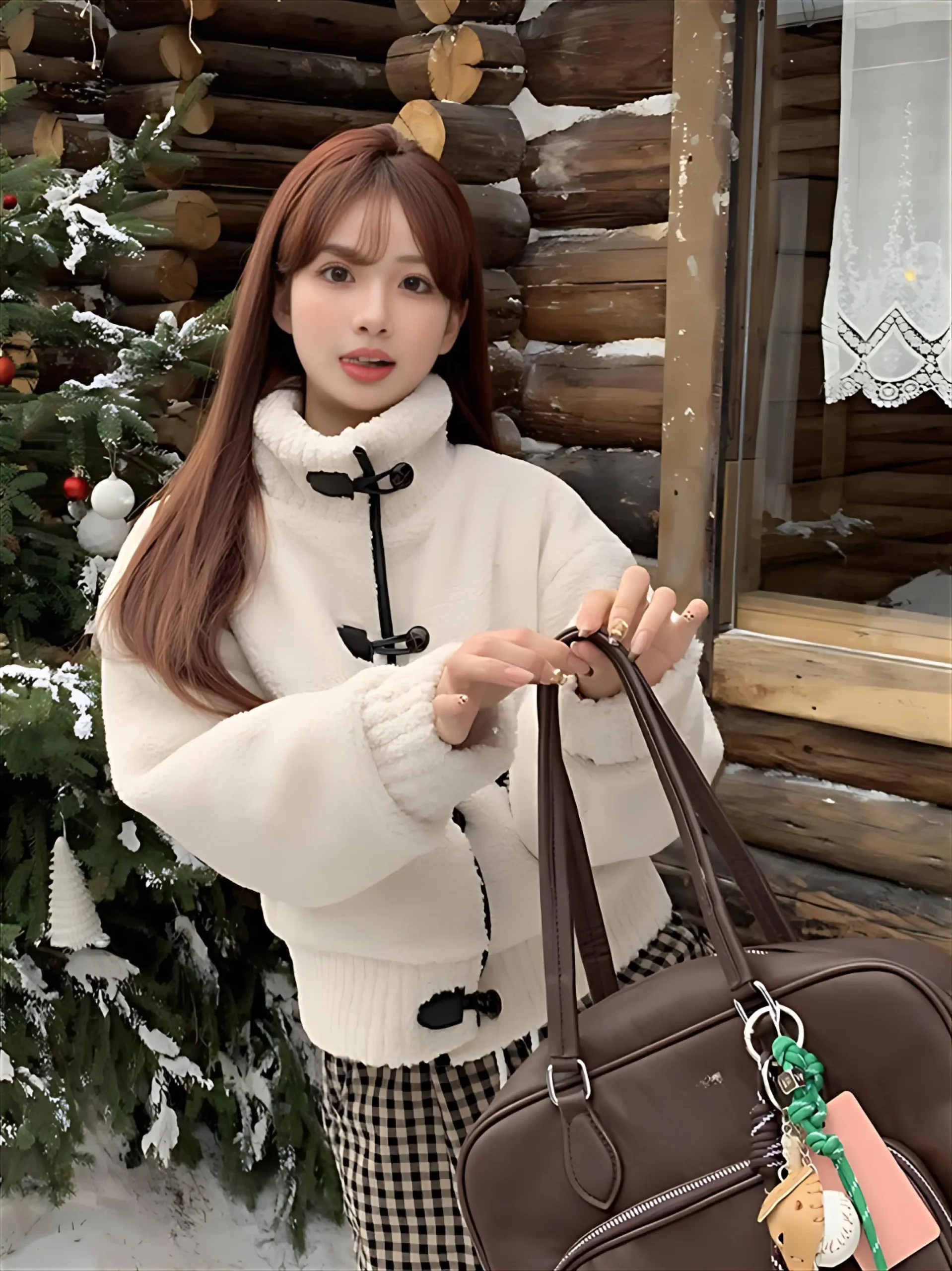 A timeless winter jacket crafted for everyday wear, this women’s lamb wool canvas coat blends classic high-school inspired styling with practical warmth. The button-front design and clean lines create a refined silhouette that pairs easily with jeans, skirts, or layered outfits for chilly days. Subtle detailing and a slightly structured fit give it a polished, versatile look suitable for both casual outings and weekend errands.