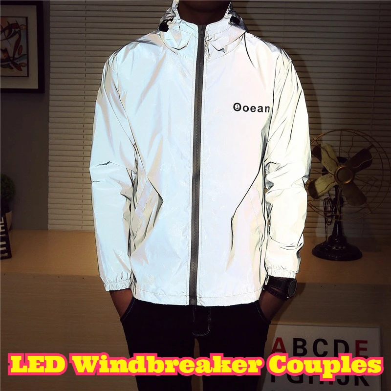 Stay visible and comfortable on evening rides or runs with this LED Light Up Windbreaker Couples Cycling Reflective Jacket. Designed for matching his-and-hers use, the lightweight shell combines reflective panels with integrated LED illumination to boost visibility in low-light conditions. The water-resistant fabric sheds light rain while the breathable construction helps regulate temperature during activity.