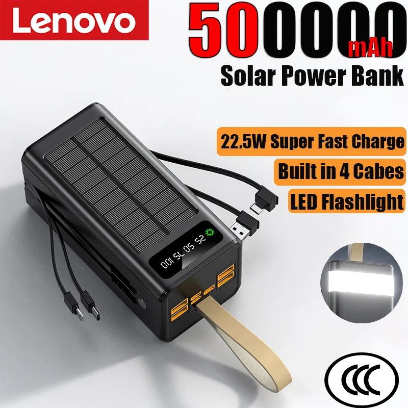 Check out Lenovo 100000mAh Solar Power Bank High-capacity Built-in Cables External Battery LED Light Power Bank for iPhone Samsung 2026 today.