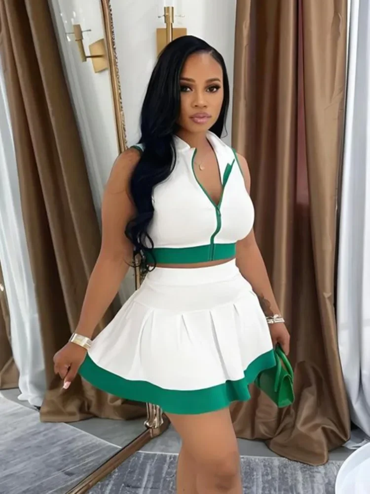 Designed for everyday wear, the zip-up vest adds convenience while the pleated skirt brings a feminine touch to athletic-inspired fashion. Available in sizes S–XXL, it suits a range of body types and styling preferences. Wear together for a coordinated outfit or mix and match the pieces with other wardrobe staples.
