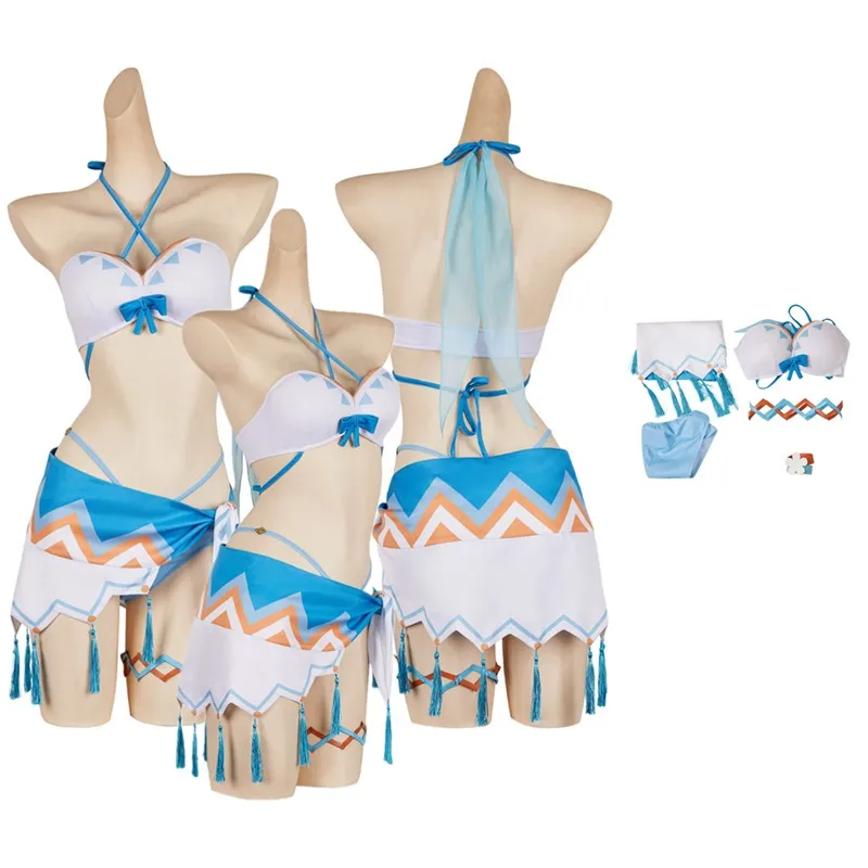The skirt pairs smoothly with the bikini silhouette, offering a flattering layered look that suits a variety of body types. Easy to style with accessories, wigs, and makeup, this versatile piece transitions from beach-ready to full cosplay ensemble with minimal effort. Affordable and fun, it’s a go-to choice for fans seeking a recognizable, spirited outfit without overcomplication.