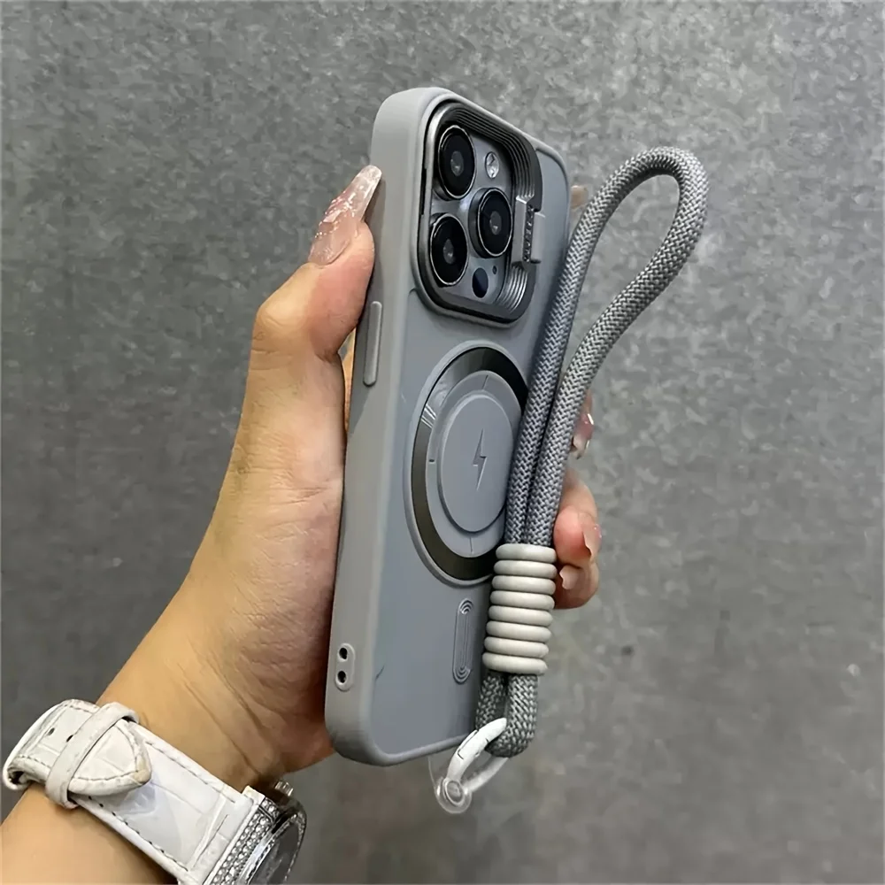 Luxury Flip Up Lens Holder Magnetic Phone Case for IPhone 17Air 16 15 14 13 12 11 Pro Max Plus Wristband Lanyard Soft Back Cover