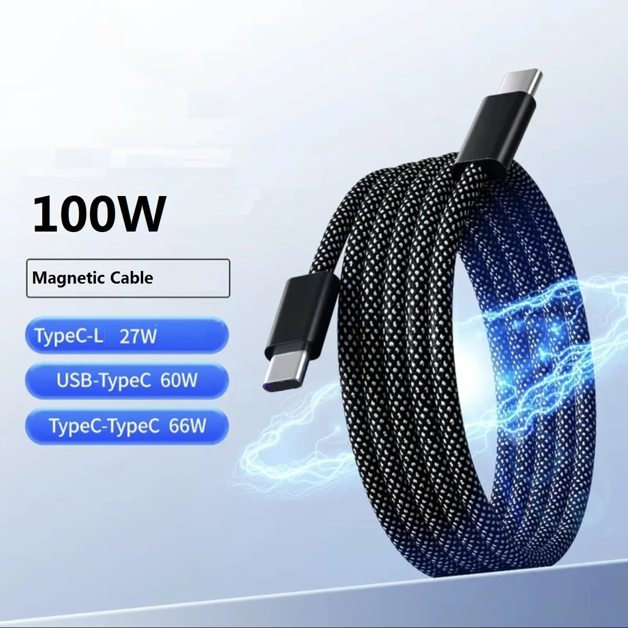 A versatile charging and data cable designed for fast, reliable connections across a wide range of USB-C devices. This magnetic 100W USB-C to USB-C cable supports high-power charging for laptops, tablets, and phones, while also handling data transfer between compatible devices. The magnetic connector simplifies attachment and detachment, reducing wear on device ports and making one-handed use convenient.