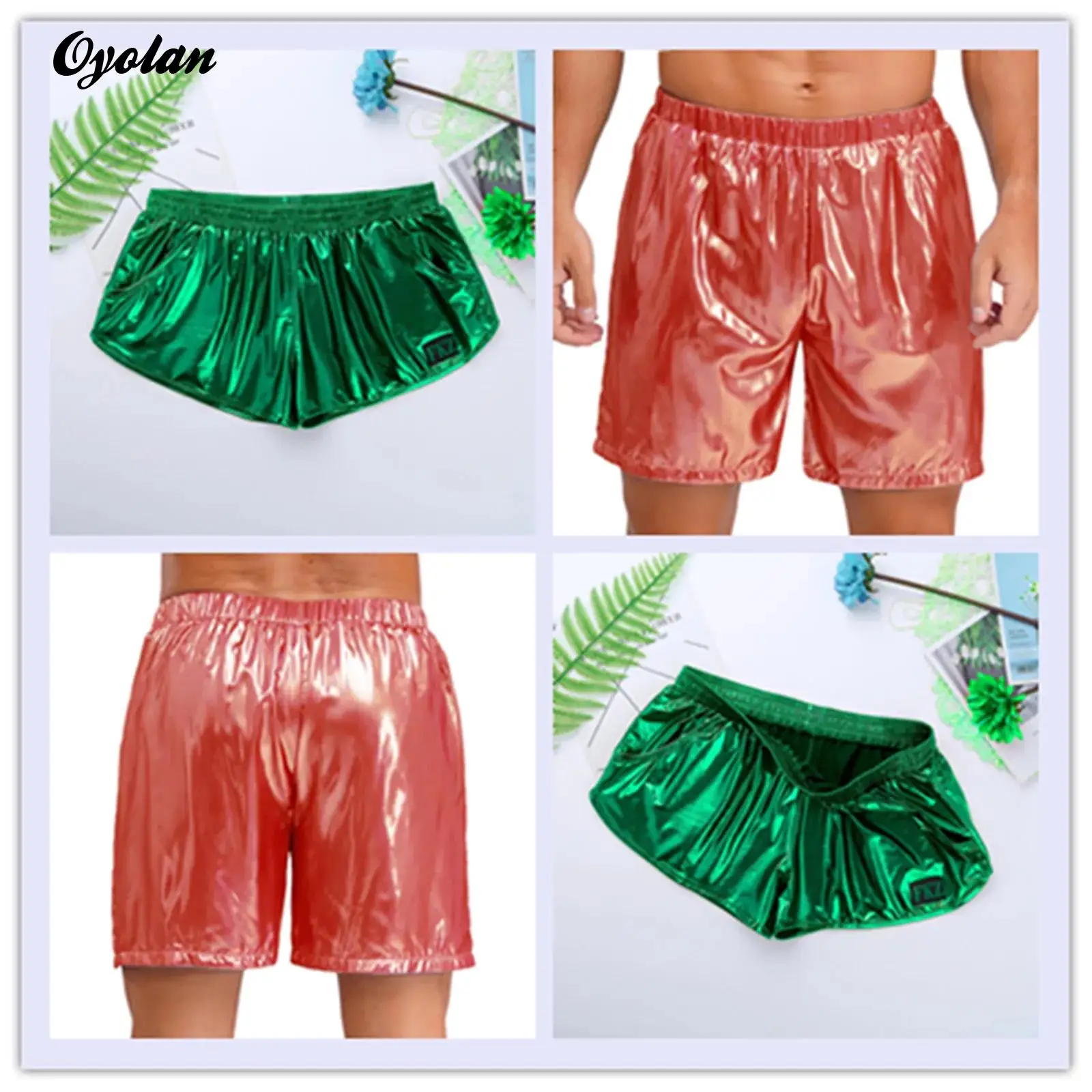 See Mens Shiny Swimming Boxer Shorts Elastic Waistband Side Pockets Loose Beach Shorts Glossy Bottoms Loungewear Rave Party Clubwear available online.